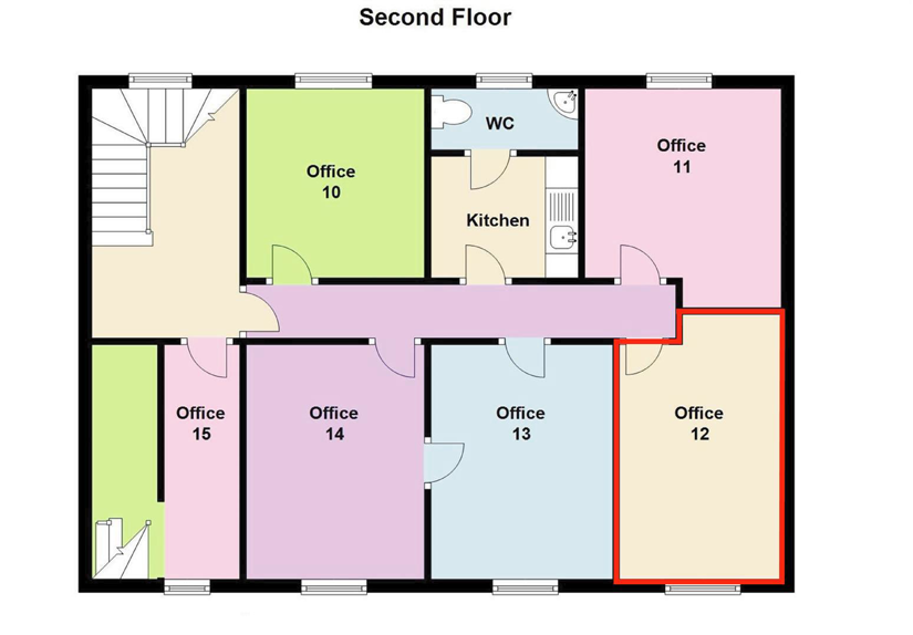 A serviced office centre of 15 offices built in 2017. Office 12 is a second floor office of of 79.54 square feet with entry phone and WC and kitchenette to the second floor. 185 Parrock Street was rebuilt under 2017 building regulations, placing the building in a 'B' EPC, meaning an eco-efficient and top quality working space, with 24/7 access.
