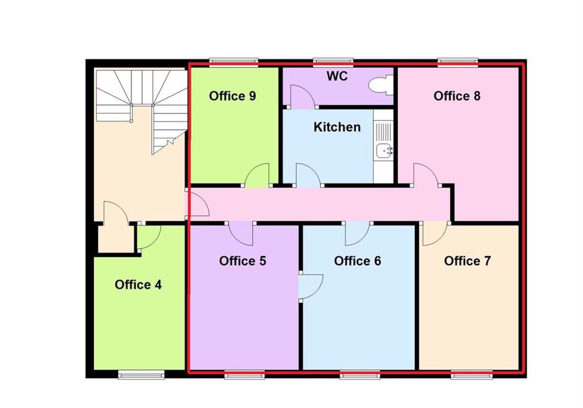 First floor office suite comprising five individual offices, detailed as follows: