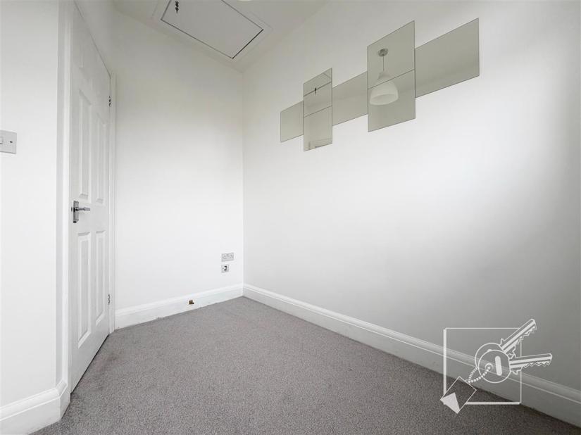Upstairs there is a large main bedroom to the front, a second double bedroom, and a smaller third room ideal for use as a nursery or home office, along with a family bathroom.