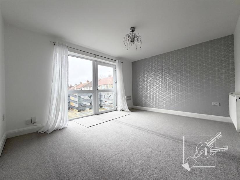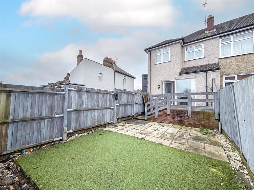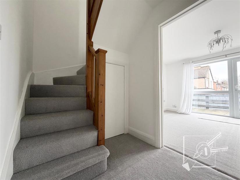 The property has been redecorated throughout and benefits from new carpets. The ground floor offers an entrance hallway, a spacious kitchen and a bright living room with patio doors opening onto the rear garden.
