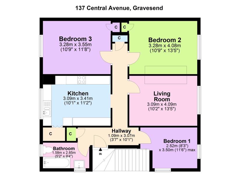A recently redecorated three-bedroom flat located on Central Avenue. The property includes a modern kitchen, living room, two double bedrooms, and one single bedroom. It also benefits from a newly fitted bathroom and new carpets throughout.
