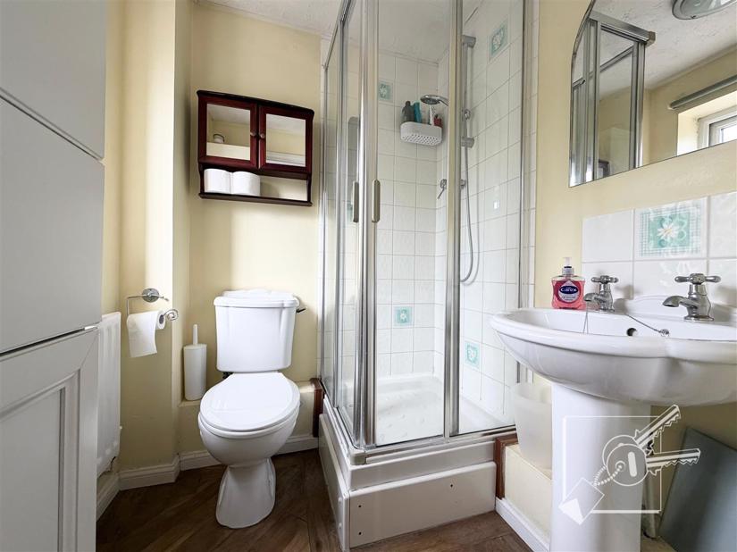 Upstairs, there are two bedrooms, including the main bedroom with an en-suite, as well as a separate bathroom.