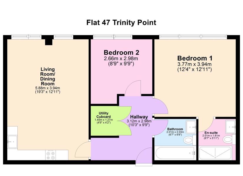 Finished to a high specification throughout, the apartment boasts a contemporary kitchen with integrated appliances, including a dishwasher and fridge freezer. A washing machine is to be fitted, and blinds will also be installed for added convenience and privacy.