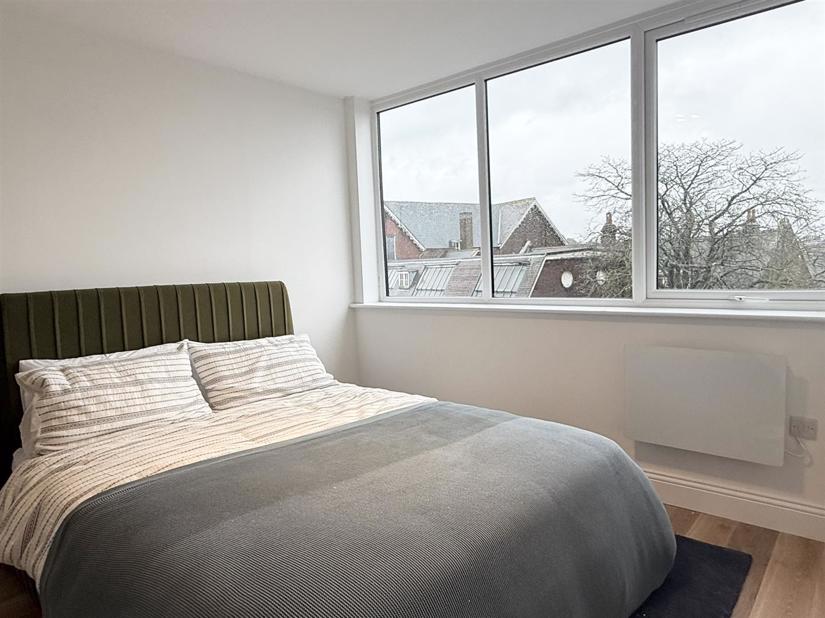 This brand new, one bedroom apartment is located on the third floor and features an open-plan living area, a spacious bedroom, and a modern bathroom. Boasting large windows throughout the main living areas, the property is flooded with natural light and finished to a high specification, including a contemporary kitchen and bathroom.