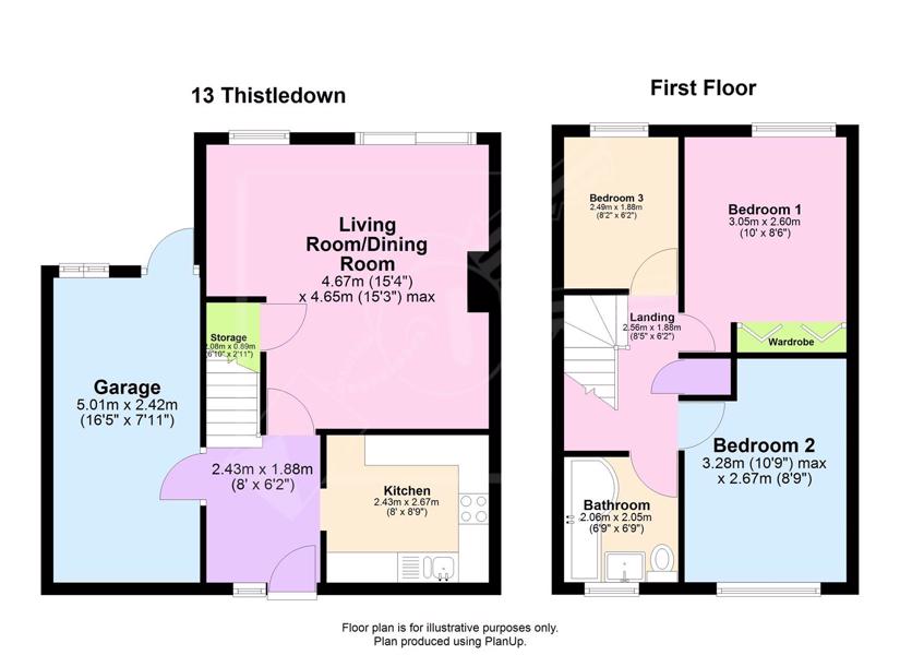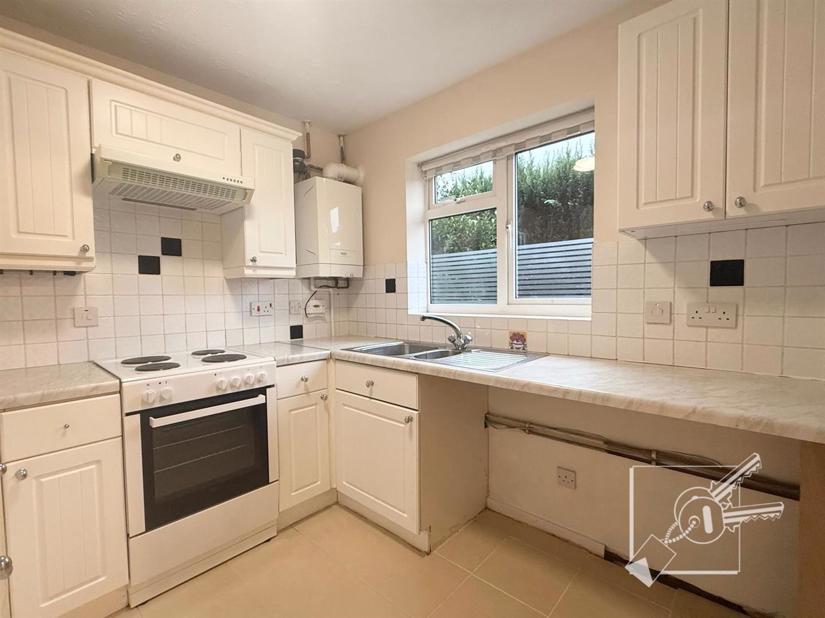 Downstairs there is a spacious living room, kitchen, garage, and access to a rear garden. Upstairs are two double bedrooms, one single bedroom, and a family bathroom.