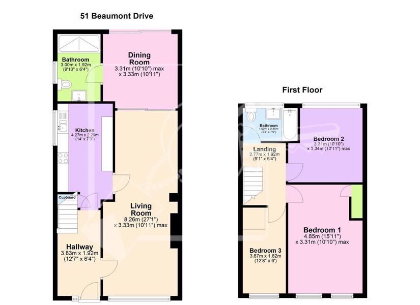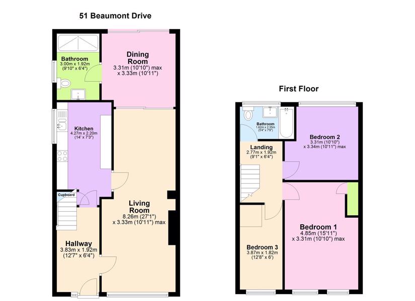 This three-bedroom terraced house on Beaumont Drive has recently been refurbished. It’s been freshly painted with new carpets and flooring throughout, a new kitchen, a new bathroom upstairs, and a new shower room downstairs.