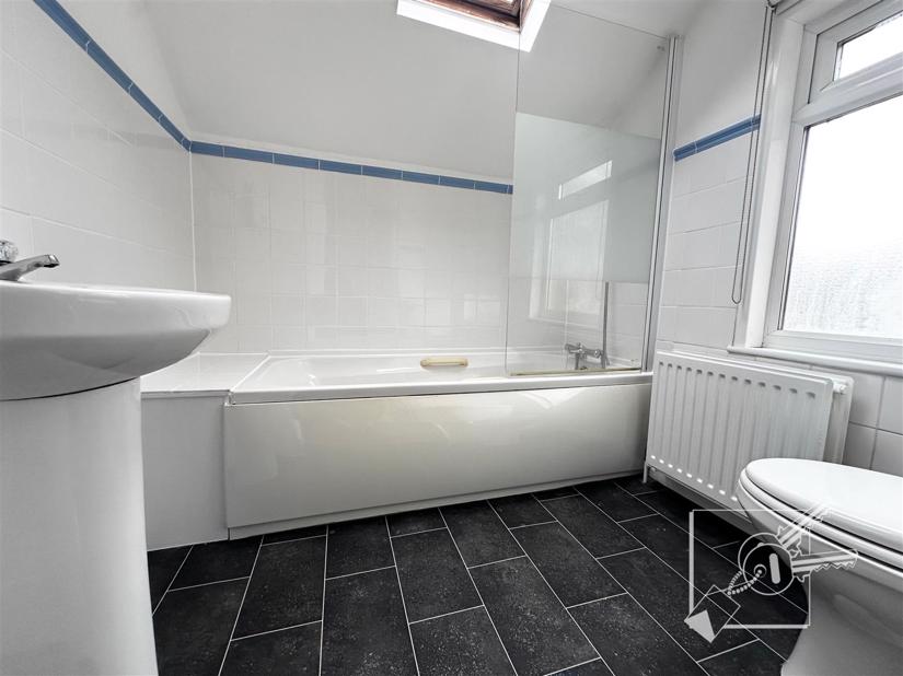 The property offers two reception rooms with new carpets downstairs, a modern kitchen with an integral oven and hob, and a convenient ground floor WC. Upstairs features two double bedrooms, with the bathroom accessed via the second bedroom, and includes a white suite with a shower over the bath.