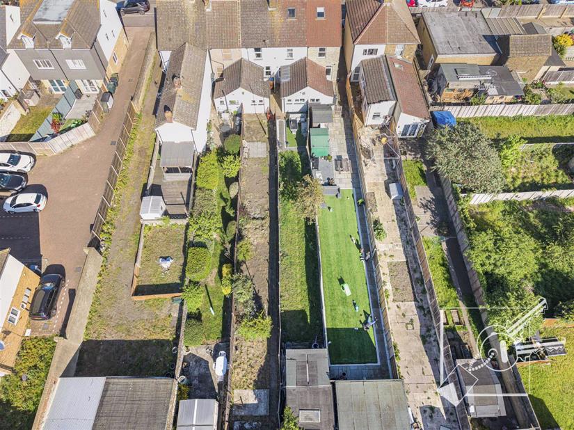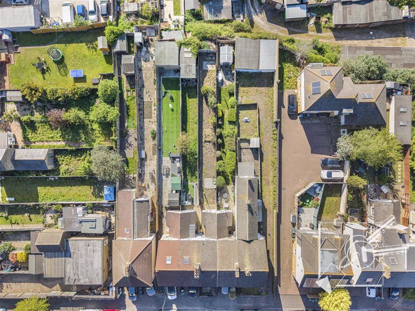 A long rear garden which requires landscaping. fencing. There is a shared gated right of way between the neighbouring properties which is a common occurrence with this type of property within the area.