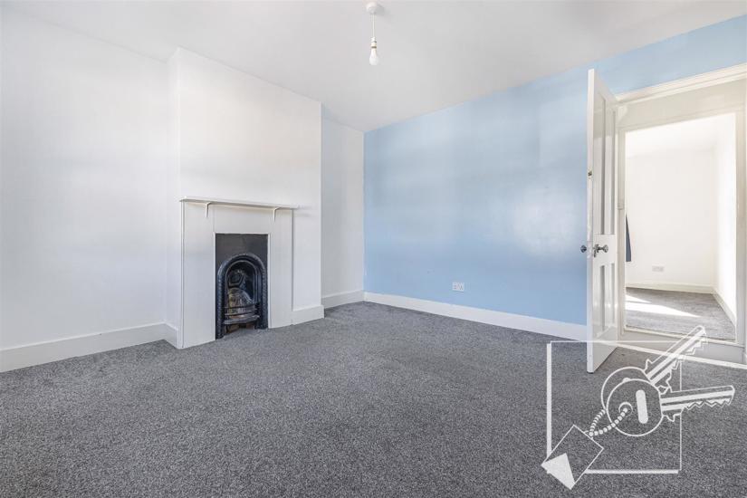 Double glazed window to front, feature ornamental fire place, carpet, radiator.