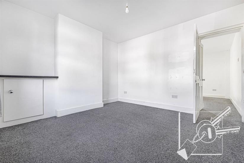 Double glazed window to front, radiator, carpet, alcove cupboard with electric meter and electrical consumer unit.