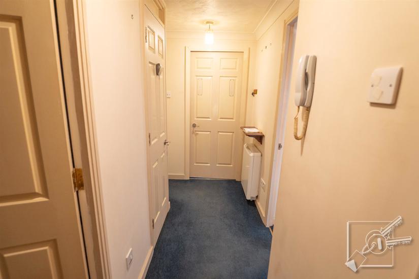 Private entrance door, entryphone handset, carpet, built in storage cupboard, airing cupboard, electric storage heater.