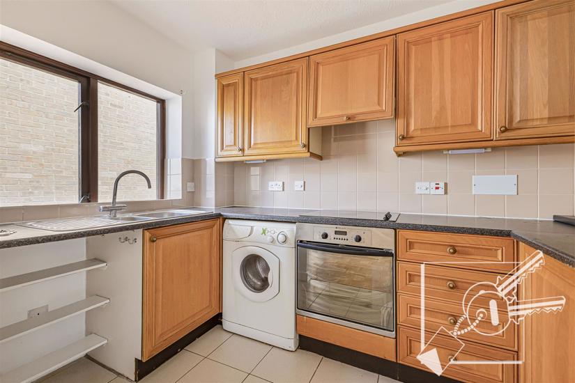 Double glazed window to front. Fitted with original Oak effect wall and base units , one and a half bowl sink and drainer, "Hotpoint" electric ceramic hob, built in oven. plumbed for washing machine.