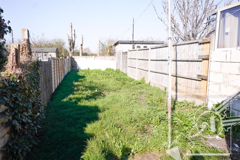 A long rear garden with a fenced perimeter. This area would benefit greatly from landscaping.