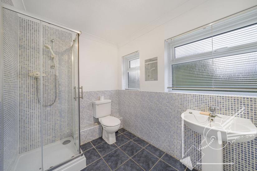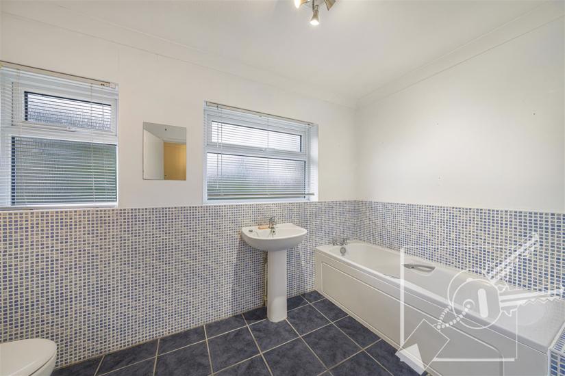 Double glazed window to rear, radiator, part tiled walls. Modern four piece suite comprising panelled bath, separate shower cubicle, pedestal wash basin, low level w.c.