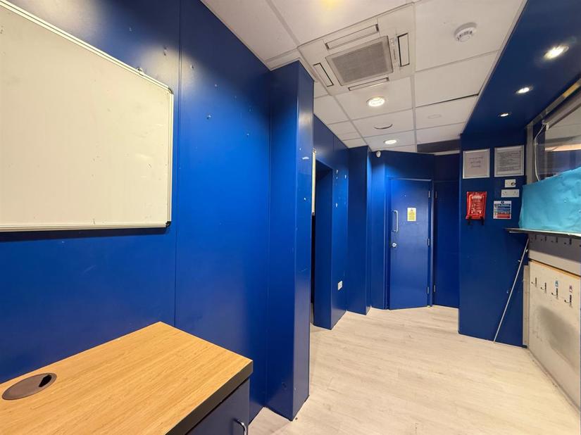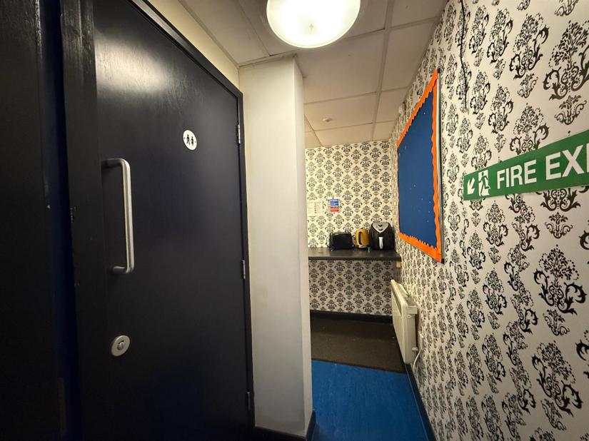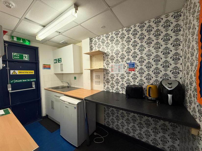 Staff kitchen/Lobby/WC: 97Sq Ft, with fire exit to shared communal area at the rear.