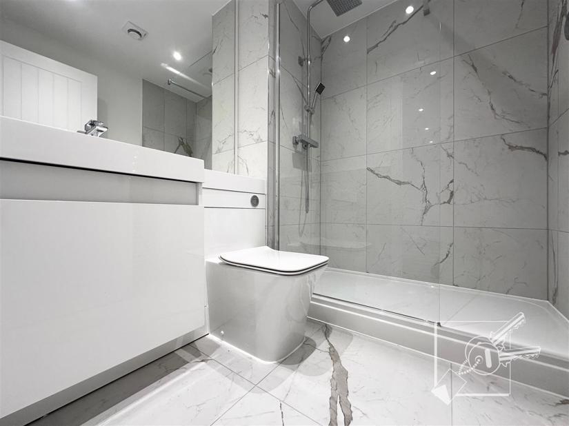 This brand new, one-bedroom apartment is located on the second floor and features an open-plan living area, spacious bedroom, and contemporary bathroom. Boasting large windows throughout the main living areas, the property is flooded with natural light and finished to a high specification, including a modern kitchen and bathroom.