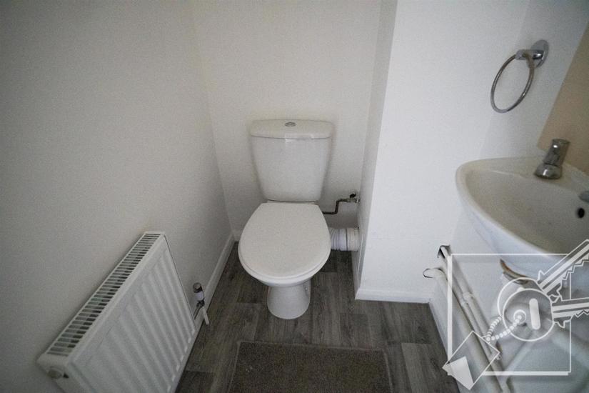 Situated off the entrance lobby, with low level w.c, wash basin, radiator, vinyl floor.