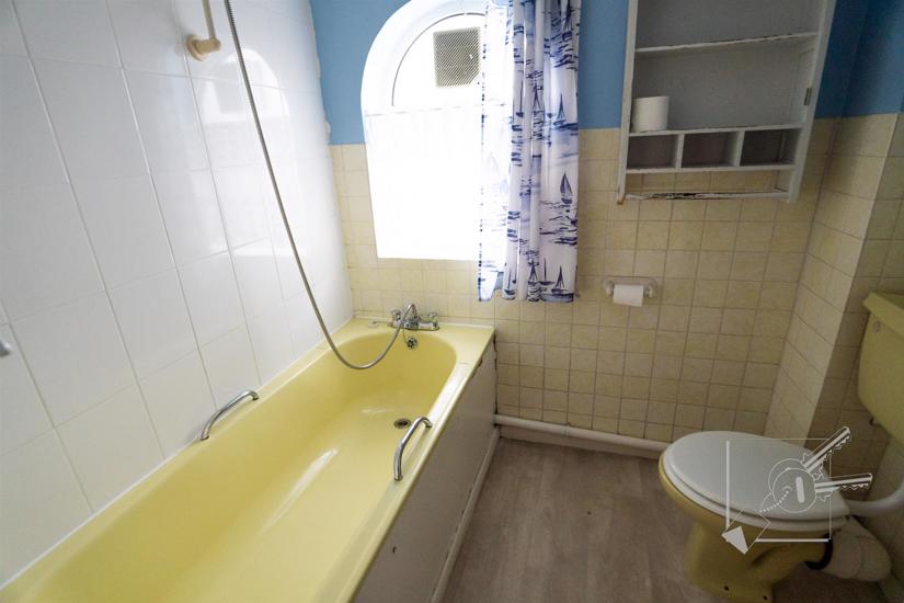 Double glazed window to rear, vinyl floor, radiator. Original primrose coloured suite, comprising panelled bath with shower mixer taps, pedestal wash basin, low level w.c..