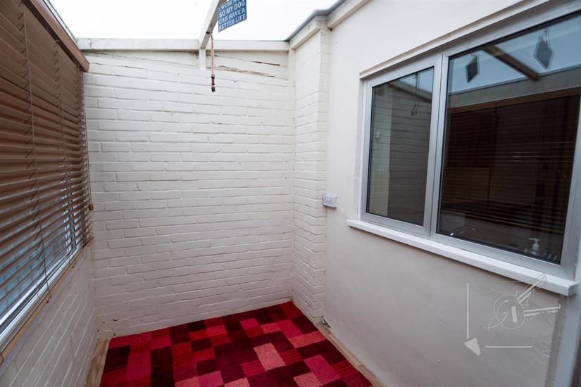 Brick built with double glazed windows to rear, poly carbonate roof, upvc stable style door to garden.