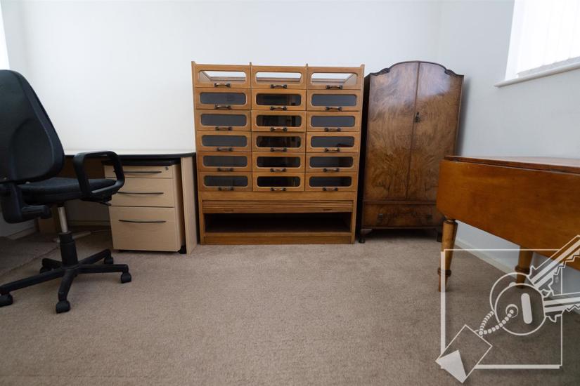 The third double bedroom in this generous home with double glazed window to rear, radiator, carpet, built in cupboard housing Vaillant Condensing boiler.