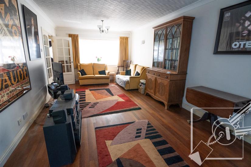 A spacious double aspect room with double glazed window to front, double glazed patio doors to rear leading out to garden, solid wood floor, two radiators.