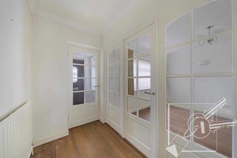 Double glazed door leading out to garden, tiled floor, radiator, under stair cupboard.