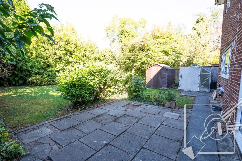 A mature Westerly aspect rear garden, mainly laid to lawn, paved patio, two timber sheds, side access, water tap, external power point.