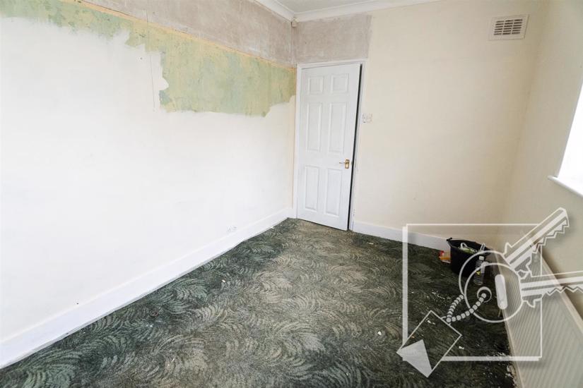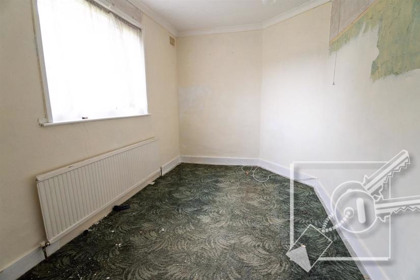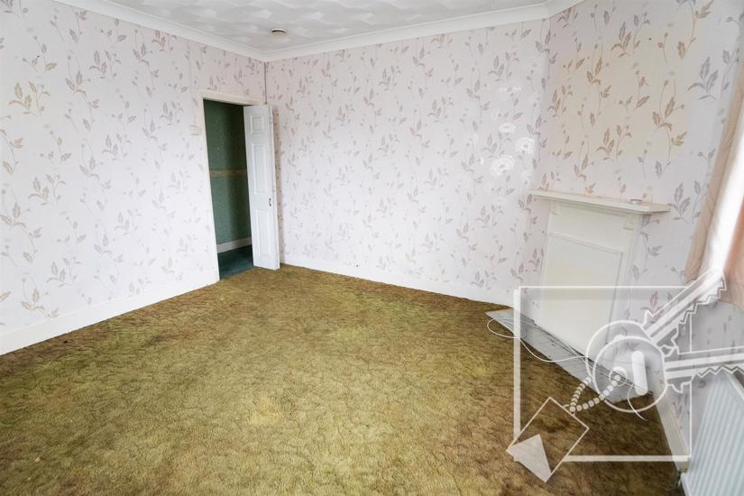 A comfortable space benefitting double aspect double glazed windows. Carpeted floors. Boarded fireplace in corner of room. Two radiators.